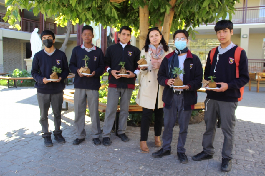 Las plantas fueron regadas con el apoyo de alumnos de 1° medio quienes recorrieron la Escuela para regalarle a Profesores y áreas una Kokedama, lo que también tiene un símbolo de Abundancia.